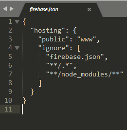 Firebase nos crea un archivo firebase.json con el siguiente contenido